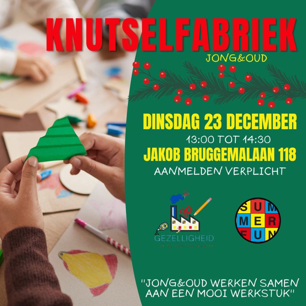 In de kerstvakantie openen wij weer de deuren van onze eigen knutselfabriek. Jong en oud mogen weer aan de slag met een eigen knutsel. Deze knutselfabriek staat in het teken van de Kerst. De knutselfabriek vindt plaats in het Jakob Bruggemacentrum. Aanmelden voor deze activiteit kan door een mail te sturen naar summerfunveendam@hotmail.com o.v.v. naam kind/kinderen en volwassene en de leeftijd van de kinderen. Summerfun stuurt een bevestiging met meer informatie. Deze activiteit is gratis toegankelijk.