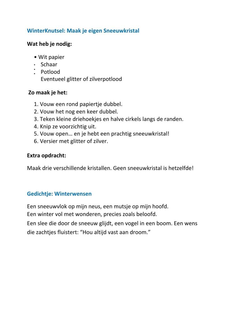 Wat is er een flink pak sneeuw gevallen. Zoveel hebben we in jaren niet gezien, en heel veel kinderen nog nooit. De komende dagen dus heerlijk spelen in de sneeuw en mochten jullie de sneeuw zat zijn. Summerfun heeft een Winter Doeboek gemaakt met een paar leuke spelletjes om thuis te doen. Ook een kort verhaaltje met een knutseltje en een quizje.